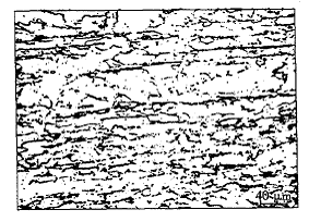 控軋態(tài)Q620D試板的金相組織均是貝氏體組織,如圖1所示。說明在目前的成分設(shè)計(jì)和軋鋼工藝條件下可以得到低碳貝氏體組織鋼板。組織基本是粒狀貝氏體組織,不是最希望得到的小晶粒尺寸板條貝氏體組織。未得到理想組織的主要原因應(yīng)該與軋機(jī)能力限制、各道次的變形量不夠大和破碎晶粒不徹底有關(guān)。從金相組織照片可以看出,晶粒尺寸較大并且不均勻,存在一定的方向性,導(dǎo)致鋼板強(qiáng)度富裕量不大,塑、韌性指標(biāo)不好。