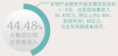 數(shù)據(jù)顯示,非鋼產(chǎn)業(yè)上半年實現(xiàn)銷售收入50.42億元,占集團公司匯總銷售收入的44.43%、同比上升5.90%,實現(xiàn)利潤1.65億元,與去年同期持平。在10家盈利的非鋼子公司中,朵力房產(chǎn)司、礦業(yè)公司等優(yōu)勢非鋼企業(yè)持續(xù)保持強勁增長勢頭,上半年分別實現(xiàn)利潤8574萬元、4364萬元,同比增長20.46%、14.33%。