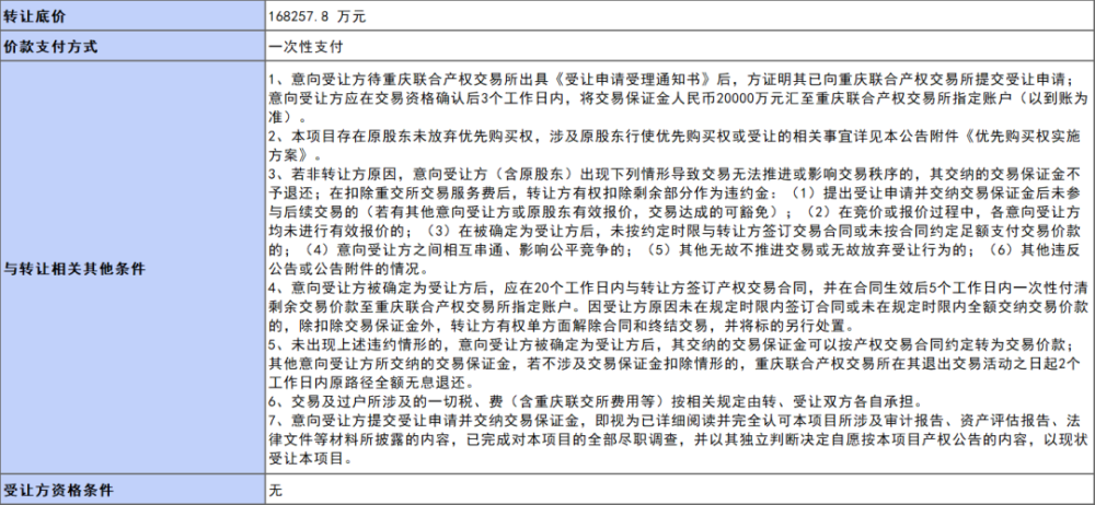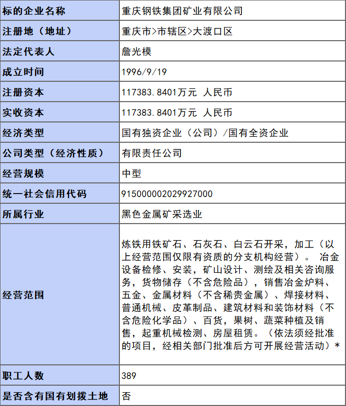 5月17日,重慶產權交易網掛牌披露重慶鋼鐵集團礦業(yè)有限公司(以下簡稱重鋼礦業(yè)公司)49%股權信息。2022年5月17日至7月12日,重慶渝富控股集團有限公司(持有重鋼礦業(yè)公司50.81%股權)將掛牌轉讓其中的49%股權,轉讓底價為168257.8萬元。