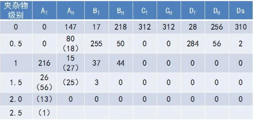 表2 20CrMnTi系列齒輪鋼中夾雜物檢測(cè)結(jié)果