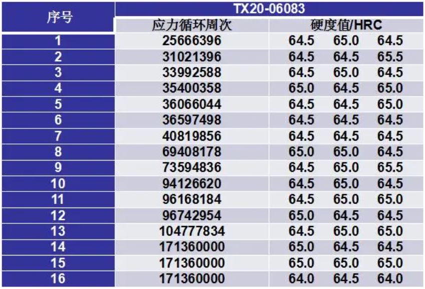 測(cè)試了軸承鋼的各項(xiàng)力學(xué)性能,疲勞壽命達(dá)到了2.6930×107次,硬度值達(dá)到64HRC以上。