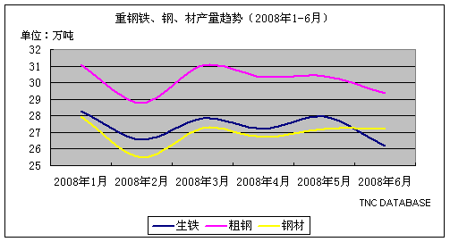 重鋼集團(tuán)鐵、鋼、材產(chǎn)量統(tǒng)計(jì)(2008.6)