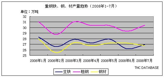 重鋼集團鐵、鋼、材產量統(tǒng)計(2008.7)