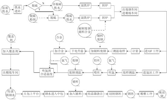 二級計(jì)量與三級計(jì)量的差異,通過系統(tǒng)歷史分析系數(shù),將系數(shù)納入到二級計(jì)量與三級計(jì)量的數(shù)據(jù)調(diào)整中。減少兩者之間的數(shù)據(jù)差距,確保動態(tài)成本計(jì)算數(shù)據(jù)中的準(zhǔn)確性。煉鋼環(huán)節(jié)物流圖如圖1所示。