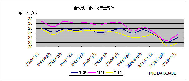 重鋼集團鐵、鋼、材產(chǎn)量統(tǒng)計(2009.01)