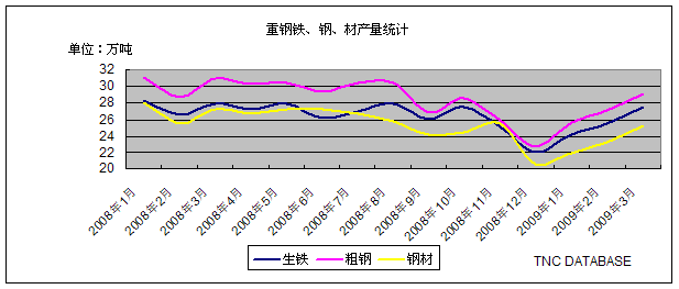 重鋼集團鐵、鋼、材產(chǎn)量統(tǒng)計(2009.03)