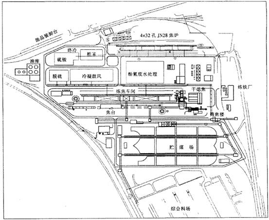 圖2:鄂鋼焦化廠改擴(kuò)建后的總平面布置框圖